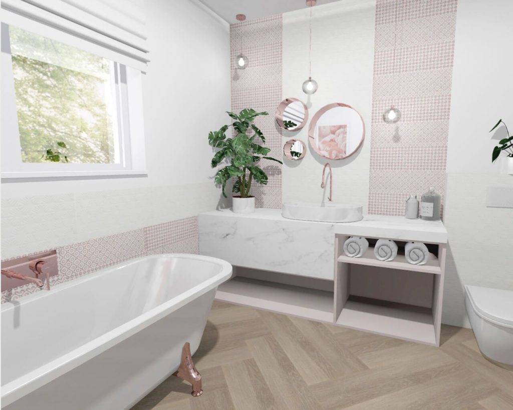 Белый кафель идеально смотрится с нежно-розовым оттенкомИсточник dekormyhome.ru