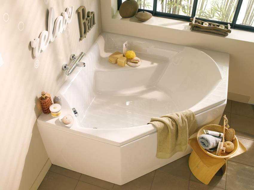 Угловые асимметричные ванны имеют более привлекательный и привычный внешний вид