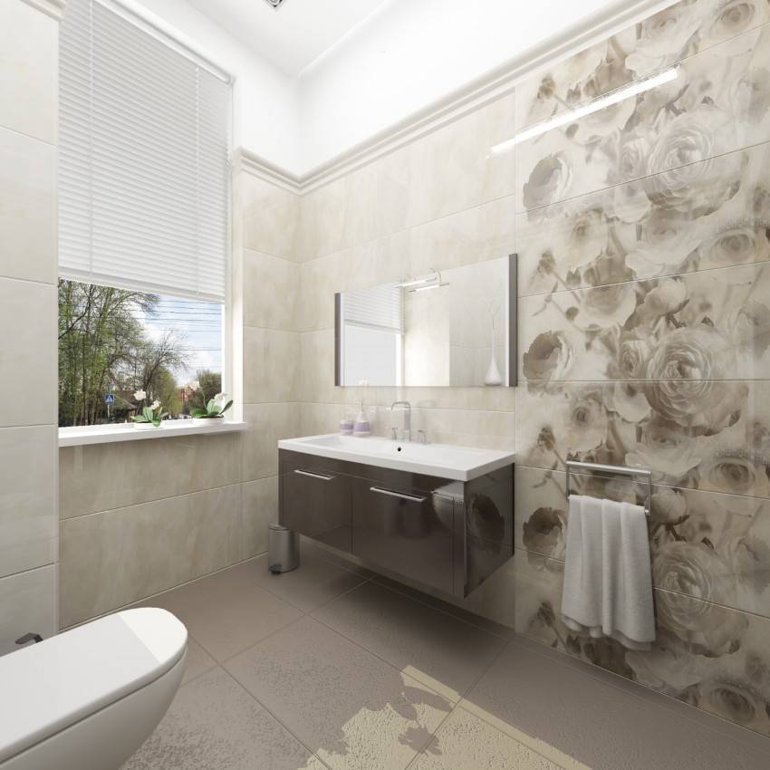 – керамическая отделка бежевого цвета станет идеальным решением для пола комнаты, так как на ней совершенно не заметны капельки воды, а для такого помещения как ванная – это немаловажный фактор.