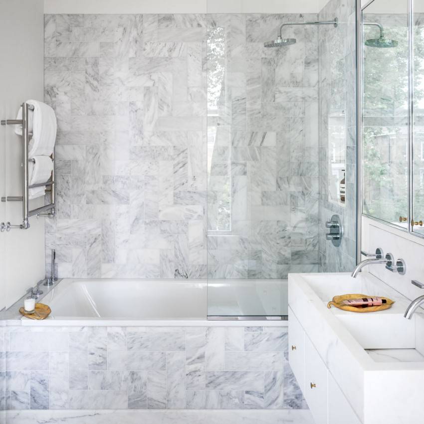 Стены – штукатурка, мрамор или природный камень. Допускается применение дорогой светлой плитки в ванную комнату.