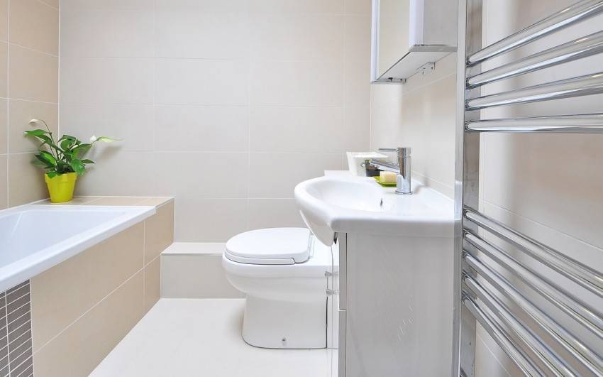 Хорошо на бежевом фоне будет смотреться сантехника металлических оттенков – бронзового или серебристого. Кремовые тона – также идеальный вариант.