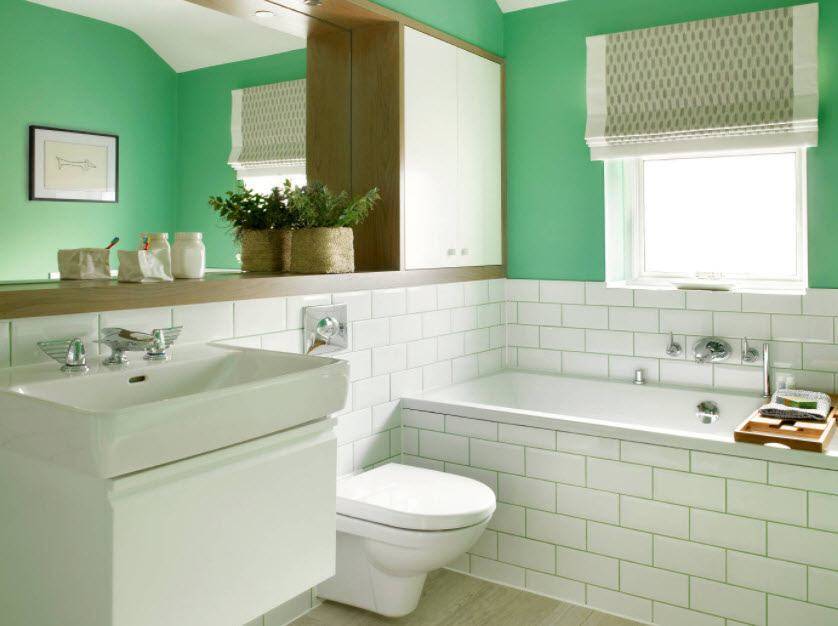 Если нет уверенности в том, что получится подобрать грамотно цвета, то стоит воспользоваться классическим вариантом бело зеленой ванной комнаты. он всегда будет беспроигрышным, как в сочетании с теплыми, так и холодными тонами.