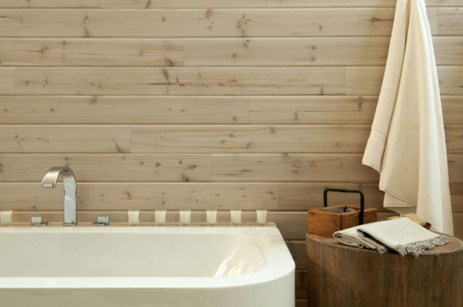 Для отделки стен в ванной комнате под натуральное дерево можно выделить несколько вариантов подходящих материалов: