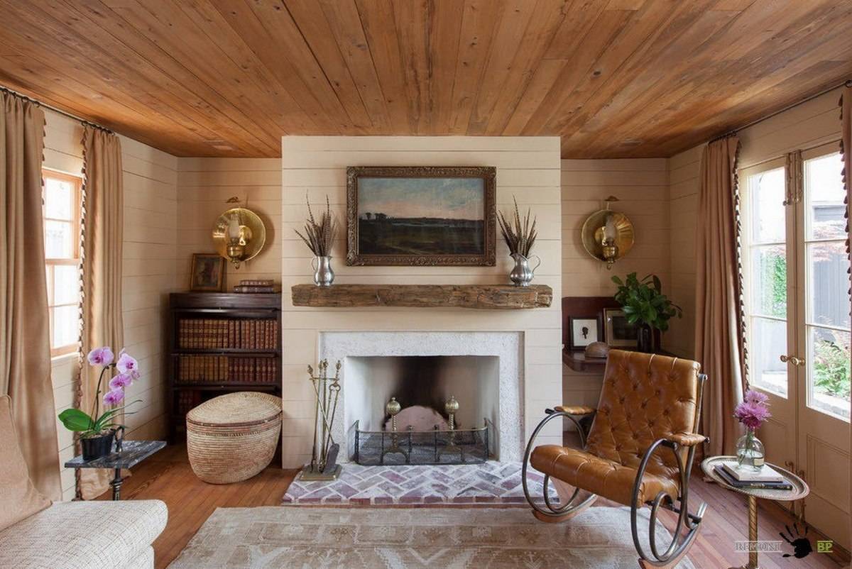 Потолок в деревенском стиле, в стиле кантри, по идее, должны пересекать деревянные балки. Не стоит из-за их присутствия переживать. В загородном доме потолок может быть: