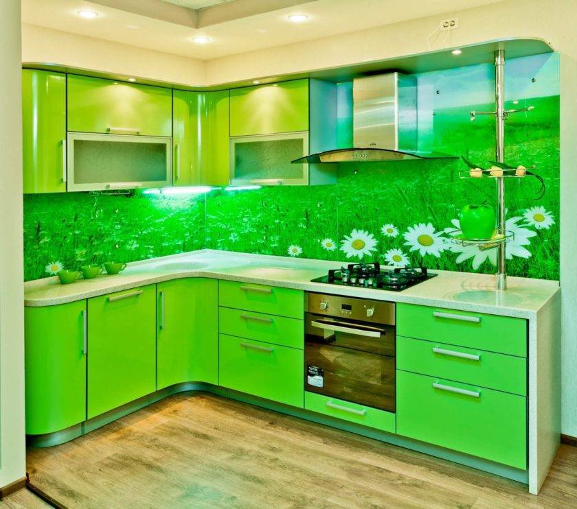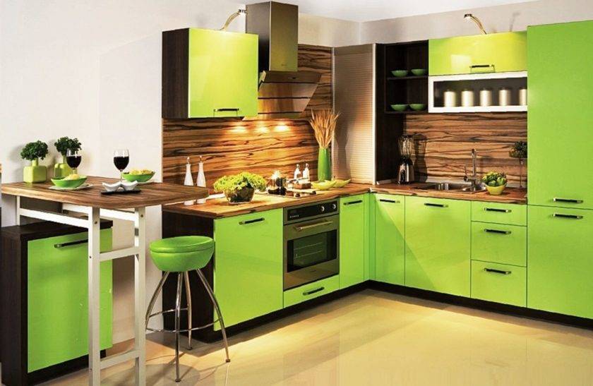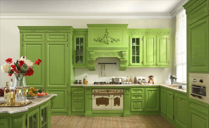 Сколько в мире людей, столько же и оттенков. Благодаря русскому языку на свет появились ядовито-зелёный, огненно-зелёный и тому подобные цвета. И соответственно, рождаются всё более чудные и удивительные дизайнерские решения. Зелёная кухня всегда будет привлекать и завораживать взгляды гостей.