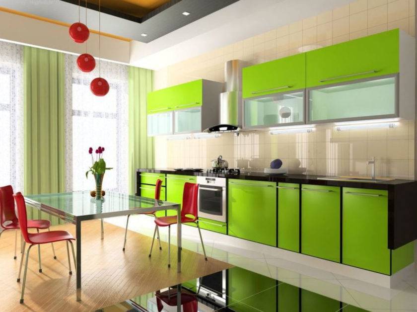 Зеленый цвет имеет широкий спектр оттенков, поэтому зеленый цвет для кухни в интерьере применяется очень часто. Он универсален и подходит помещению в любом стиле и любого размера. Рациональное применение зеленого цвета в интерьере и умение его разбавлять создаст уютную обстановку в доме.