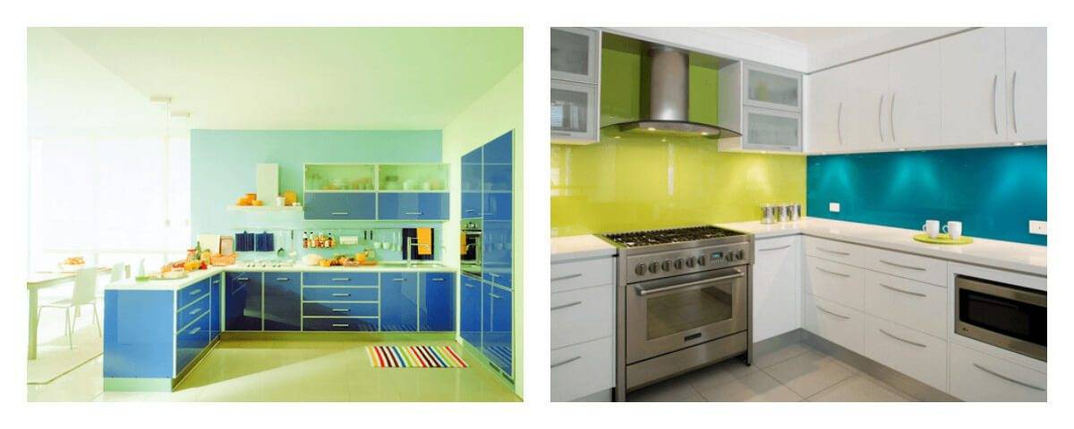 Производители кухонной мебели предлагают широкий выбор цветовых решений. При индивидуальном заказе можно самостоятельно выбирать палитру, благодаря чему в моду вошли цветные кухни: двухцветный, трехцветный, разноцветный дизайн. Удачное сочетание цветов в кухонном гарнитуре уже само по себе украшает его.