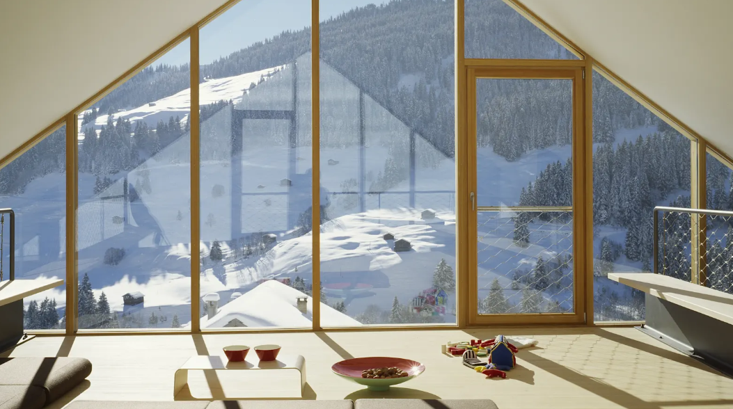 Дом с панорамными окнами может иметь окна с различным типом открывания: