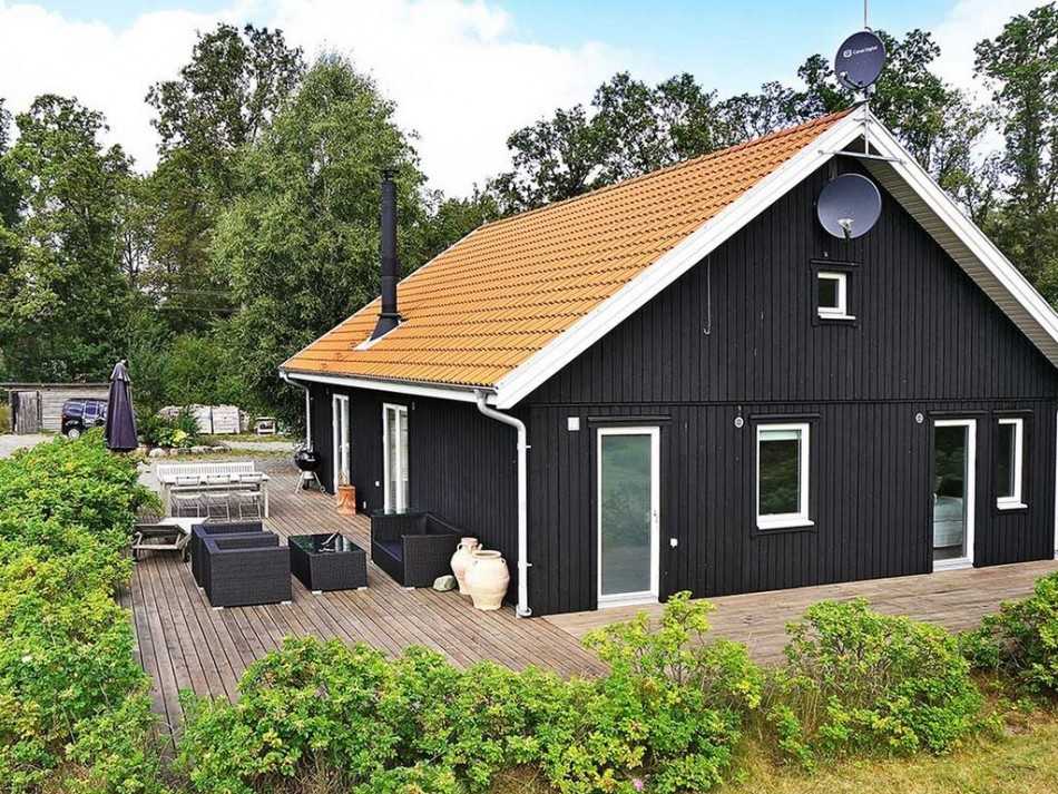 Этот дом привлекает внимание своим четким разделением на дневную и ночную зоны: и если ночная – просто максимально функциональная, то дневная способна притянуть внимание любого. Большая гостиная тут оснащена камином и примыкает к кухне, которую украшает угловое окно
