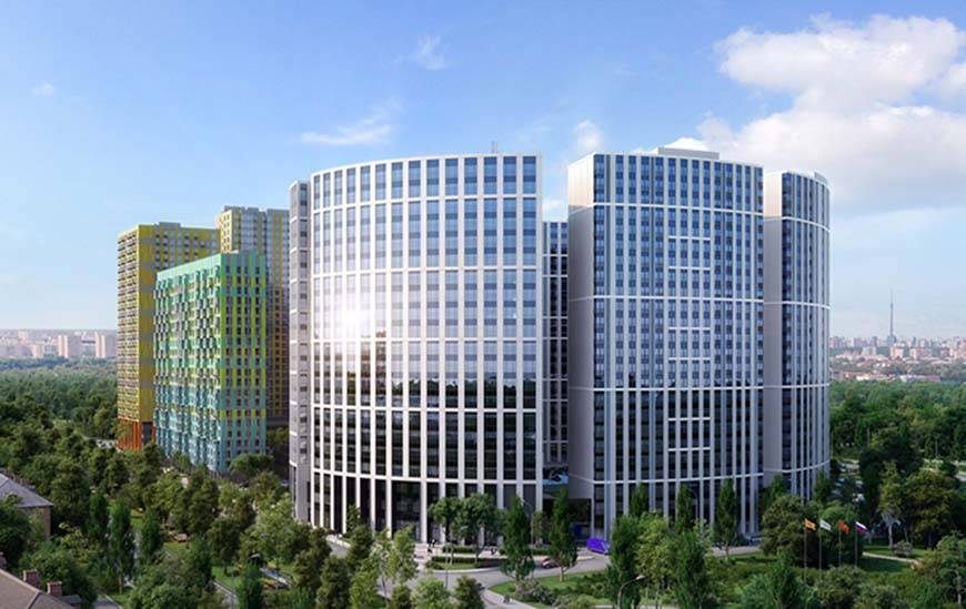 Первая очередь комплекса – это четыре отдельных корпуса переменной этажности, уже сдана в эксплуатацию. Вторая – это семь корпусов, объединённых общим стилобатом и образующих круг, – тоже уже в продаже и будет сдана с опережением срока во втором квартале 2017-го.