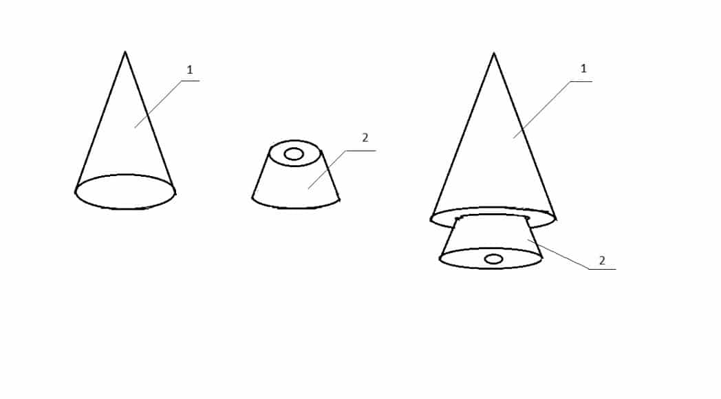 - Подготавливают коническую болванку, которую насаживают на конец черенка. Ее проще сделать из двух деталей.