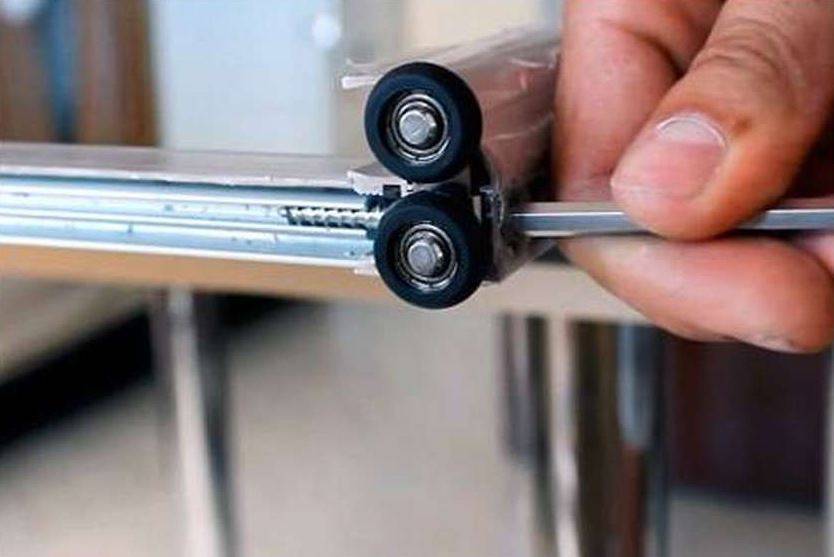 Купейная дверь используется также в шкафах. Мебельные конструкции имеют свою специфику. Как правило, такая дверь движется по двум направляющим и имеет две пары роликов. Одни располагаются внизу дверного полотна, а другие в верхней части. Межкомнатные купейные двери, в отличие от мебельных вариантов, имеют чаще всего одну направляющую – верхнюю. В данной конструкции она выполняет две функции: удержание дверного полотна и обеспечение движения.