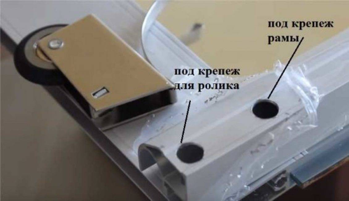 - Установка направляющей на нижней части двери. Рролик скольжения будет находиться на поверхности пола.