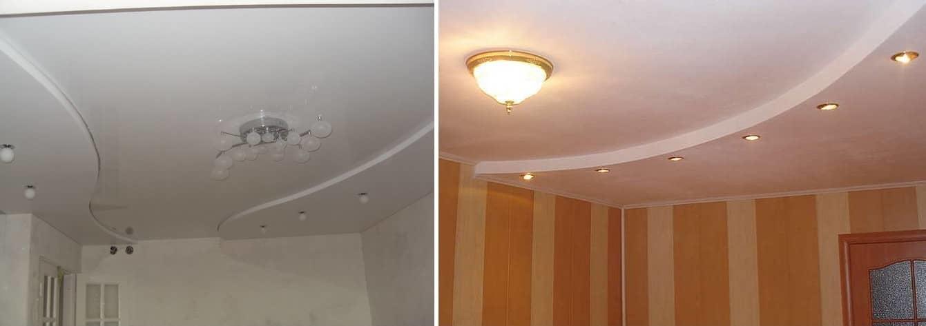 высота помещения. Двухуровневые потолки заберут у комнаты примерно 10 см высоты. Для экономии пространства выравнивают базовое основание, а на него монтируют второй уровень декоративного потолка;