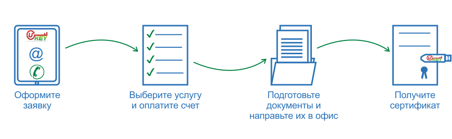 Человек собирает нужную документацию для получения усиленной квалифицированной электронно-цифровой подписи (ЭЦП), затем обращается в специальное место с ними. В центре сотрудник сверяет личность подающего, определяет достоверность всех оригиналов, обычно проверка занимает не более получаса. Затем он получает оплату, записывает сертификат на флешку или скидывает на электронную почту.
