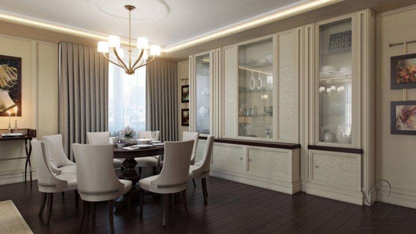 Здесь очень важно соблюдать меру, иначе интерьер может получиться вычурным и даже пошлым. Если допустить ошибку и переборщить с рыжей древесиной или золотой фурнитурой, изысканного и стильного интерьера не получится. Скорее квартира будет напоминать древнее жилище или выставочный зал мебельной фабрики