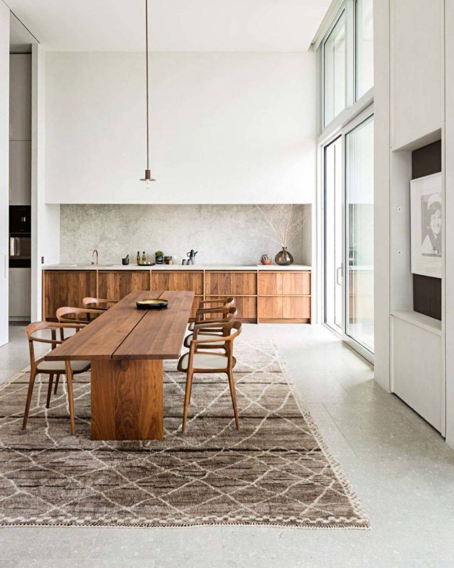 Если нарушить заданные пропорции даже чуть-чуть — до 80/20, то возникнет чувство дисгармонии и неестественности. Желательно подобрать столешнице достойного деревянного компаньона. Это может быть: