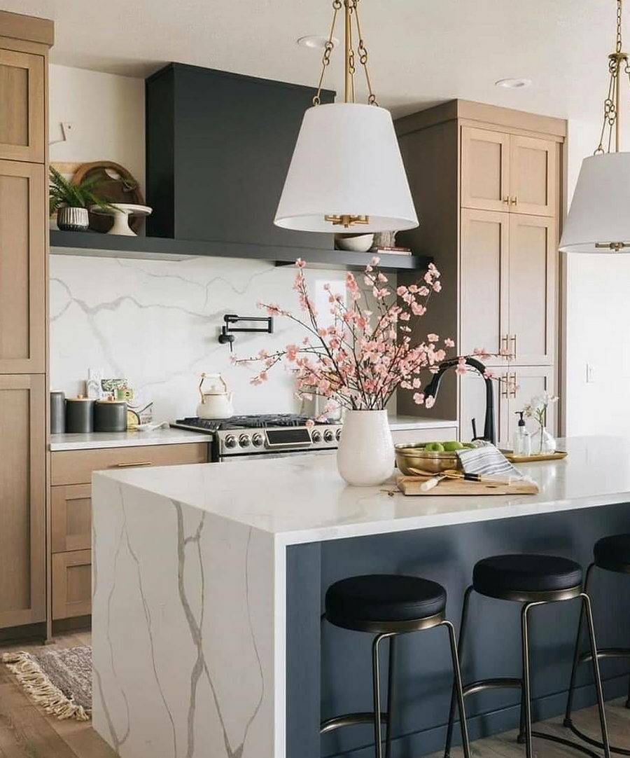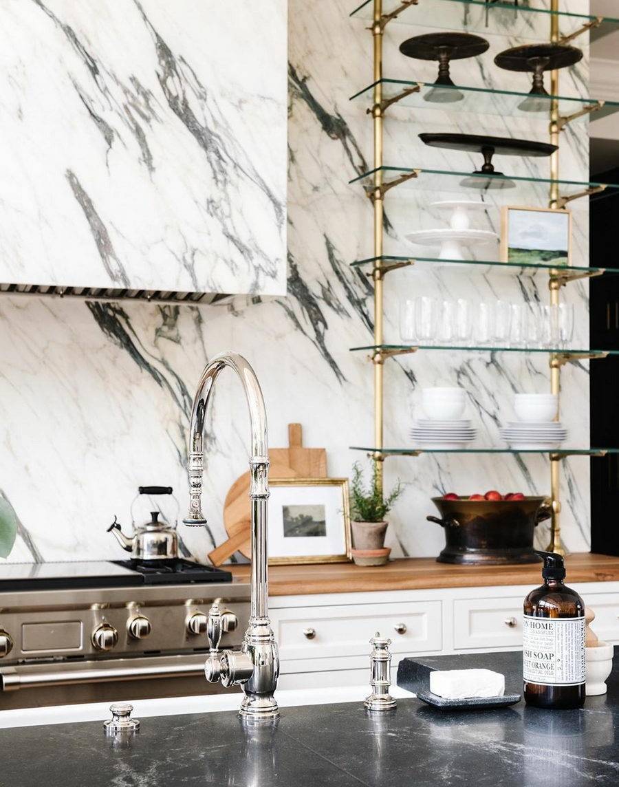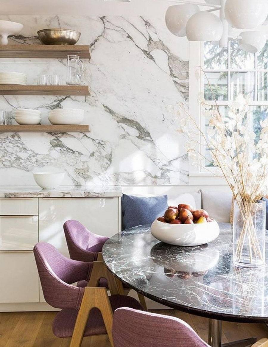 Актуальные дизайнерские решения 2019-2020 при оформлении интерьера с фартуком из мрамора