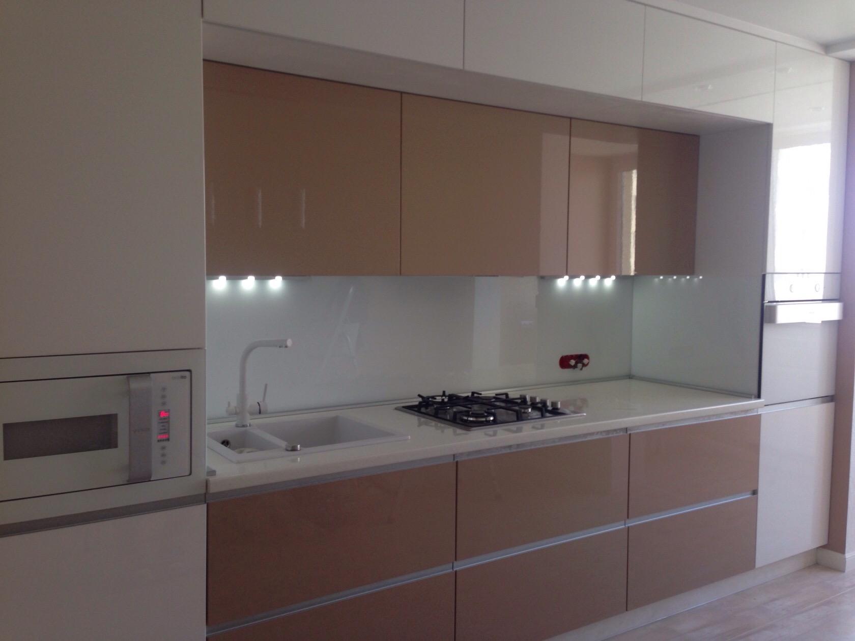 - Установка стеклянных фартуков производится только после полной сборки гарнитура или хотя бы тогда, когда вы полностью уверены в размерах будущей кухни, а розетки, выключатели, коммуникации и пр. уже установлены. Изготовление фартука – дело ответственное без права на ошибки, переделки и усовершенствования в процессе монтажа и после него.