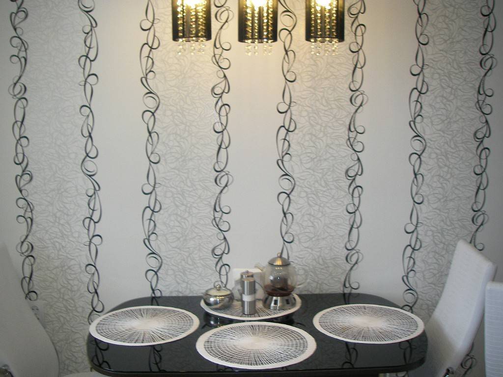 Совет! Если потолок в кухне низкий, стоит использовать светлые обои с вертикальными полосами. В просторном помещении можно смело комбинировать светлые обои с темными вставками.