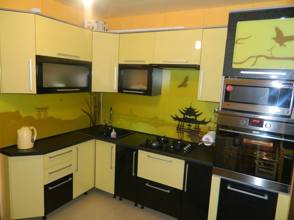 Исключительно элегантно на желтой кухне будут смотреться скинали черного цвета. Добавят позитива в интерьер и натуральные зеленые оттенки. Красный скинали на желтой кухне подарит очарование Востока, особенно если будет поддержан соответствующими аксессуарами. Светло-кофейные и шоколадные оттенки добавят глубины и благородства.
