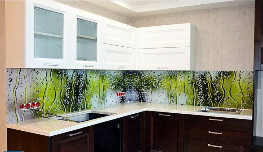 Стеклянная стеновая панель с фотопечатью для кухни благодаря защитному слою на протяжении длительного времени будет сохранять свой презентабельный вид. Такой фартук придаст интерьеру современной кухни уникальности, роскоши, наполнит ее светом и создаст отличное настроение.