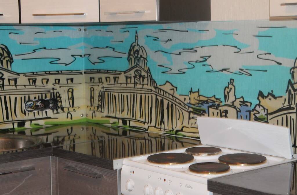 Фартук для кухни из пластика с городским пейзажем