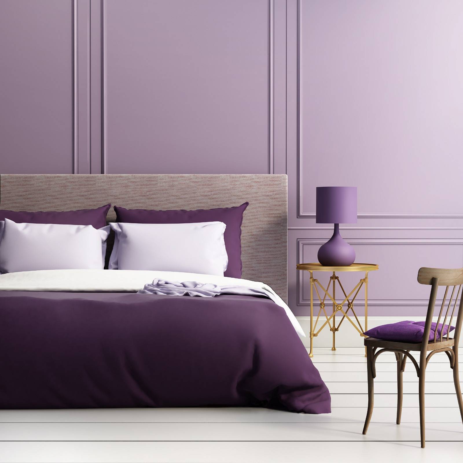 Смело выбирайте свой фиолетовый оттенок и не бойтесь экспериментировать с деталями, чтобы сделать интерьер своей спальни стильным и «с характером».