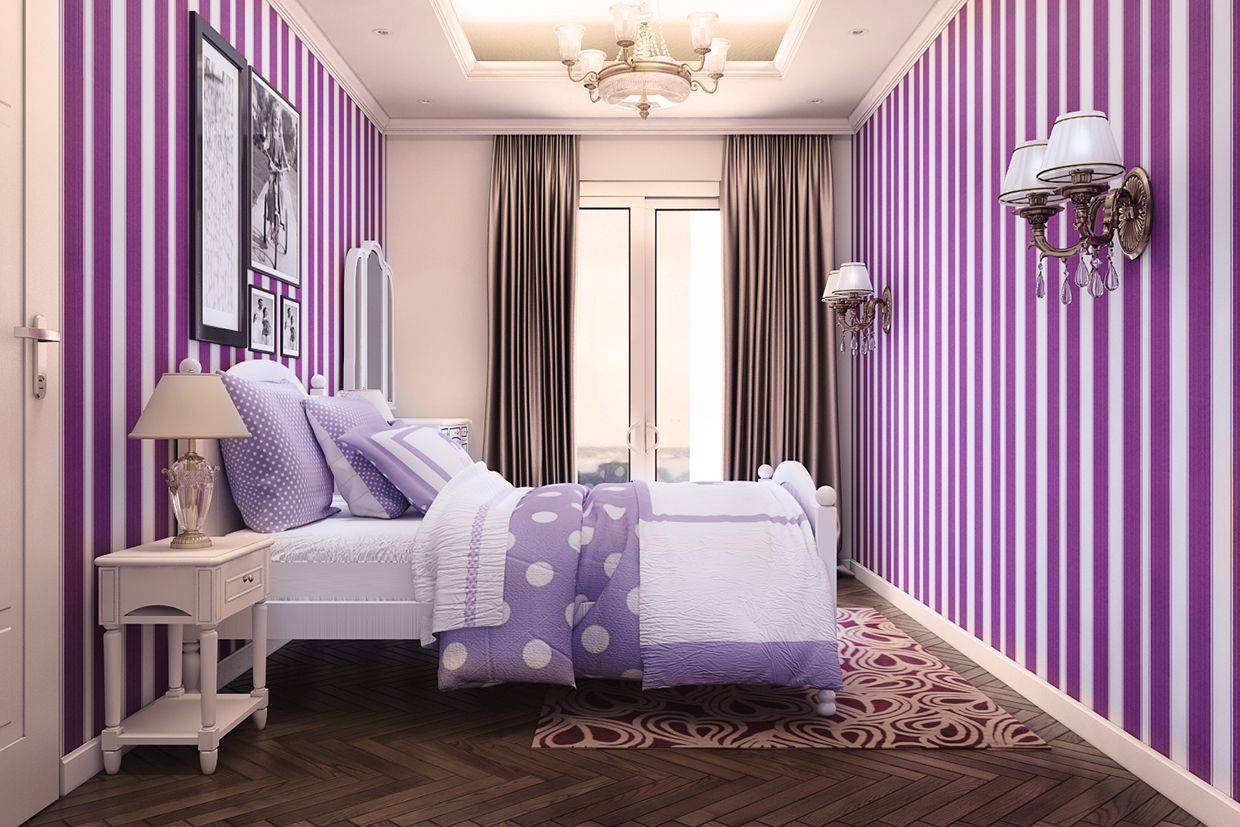 - если речь идет о небольшом помещении, то можно подобрать светло-сиреневые обои для стен, а не для штор;