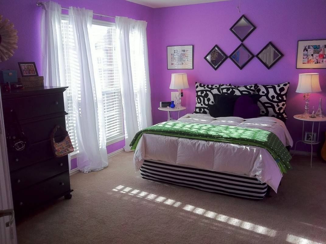 - Такие оттенки помогут создать в комнате спокойную и непринуждённую атмосферу, что прекрасно подойдёт для вашей спальни. Яркие и насыщенный оттенки сиреневого хорошо будут сочетаться с зелёным, грязно-розовым и тёмно-коричневым цветами. Такие оттенки создадут в комнате более живую и энергичную атмосферу.