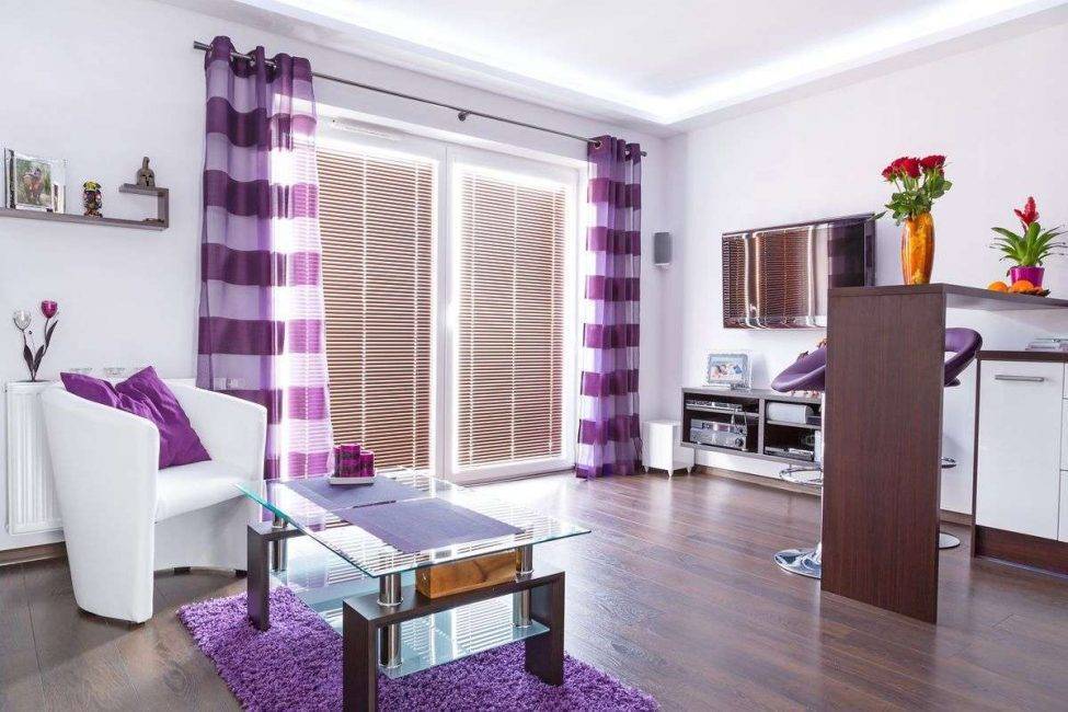 При выборе фиолетовых штор нужно уметь грамотно подбирать цветовые сочетания: