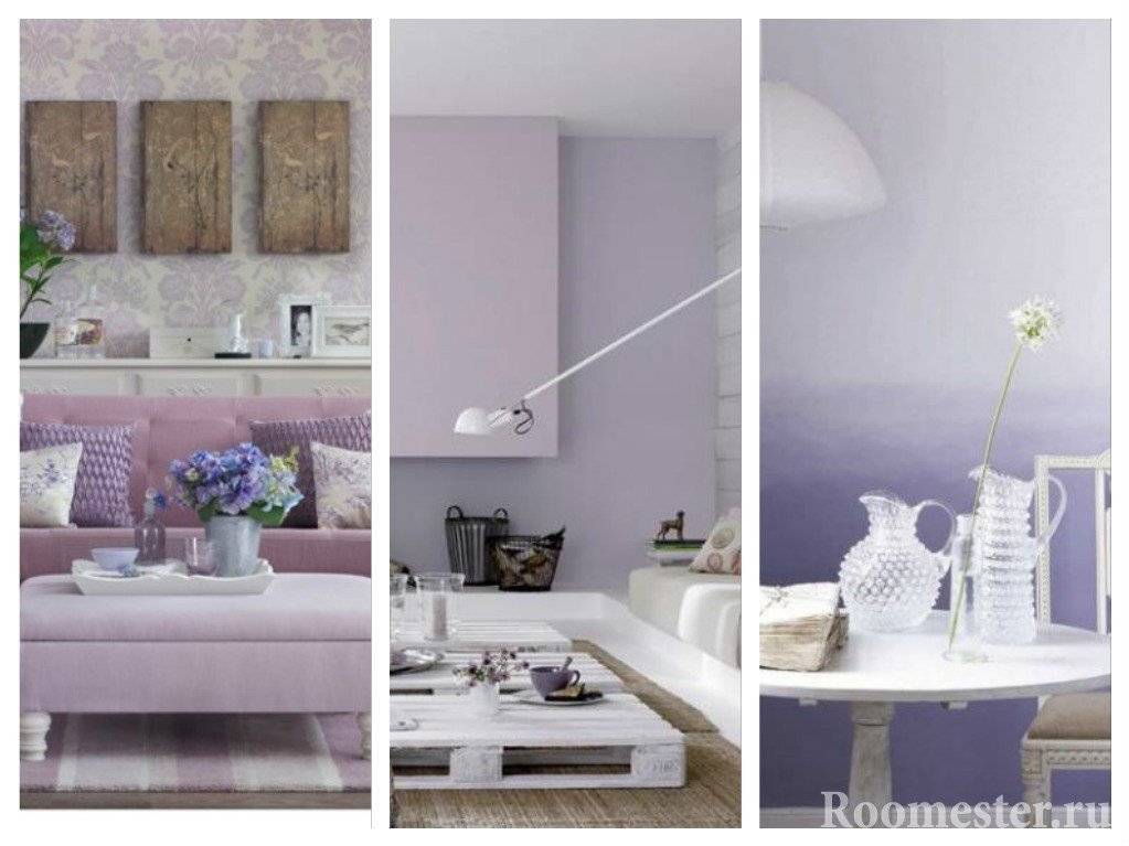Для гостиной или зала можно выбрать насыщенный сиреневый цвет – в таком случае она станет ярким акцентом всей квартиры/дома. Например, выделить им часть стены, разместив на ней семейные фотокарточки. Разбавить его можно менее контрастными оттенками сиреневого и же любым другим сочетающимся с ним цветом.