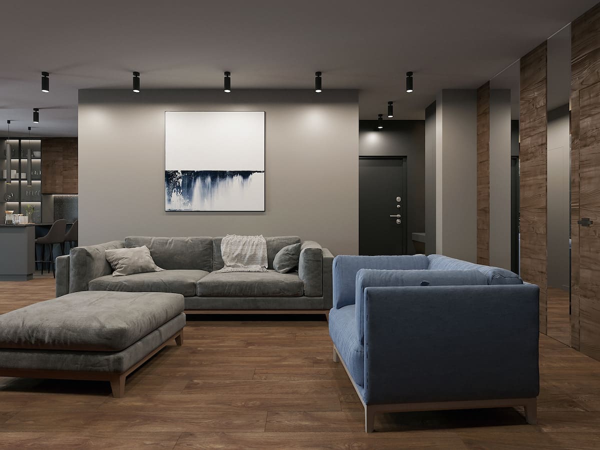 следующим этапом нужно подобрать подходящую и практичную мебель, которая будет сочетаться с дизайном комнаты. Также стоит продумать проходы и расстояния от стен до предметов мебели;
