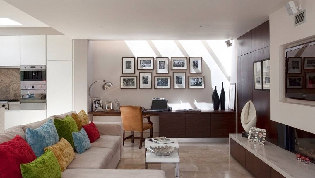 Существует множество современных архитектурных направлений. При всех своих общих чертах они имеют и различия. Например, популярный сегодня конструктивизм отличается наличием ломаных линий, которые и выполняют функцию декора. Открытые пространства домов в этом стиле не делят на функциональные зоны. В качестве акцента можно повесить на стену большую картину, выполненную в ярких чистых красках.