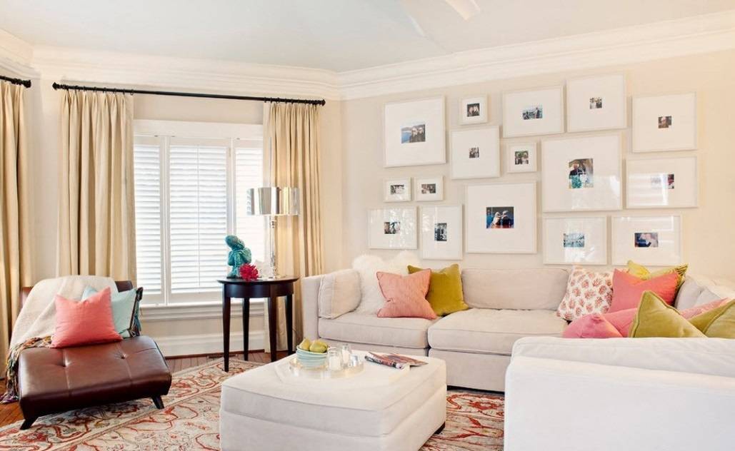 Любителям объединения фото в композиции дизайнеры советуют ориентироваться на какой-то один размер. Притом поместить снимки можно как угодно: вразброс, симметрично, параллельно одна к другой. Хорошее впечатление производит как одно большое фото, так и несколько одинаковых по размеру, что старательно выстроены в ряд. А украшение интерьера горизонтальными и вертикальными рамами, а также фотоколлажами порадует гармонией лишь в случае предельной строгости последних и тонировки снимков в единой цветовой гамме.