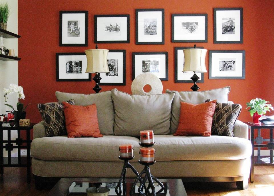 - вокруг телевизора – здесь может сработать принцип равновесия при размещении нескольких фотографий. Обычно зона, где размещается телевизор остается пустой. Это поможет красиво заполнить пространство;