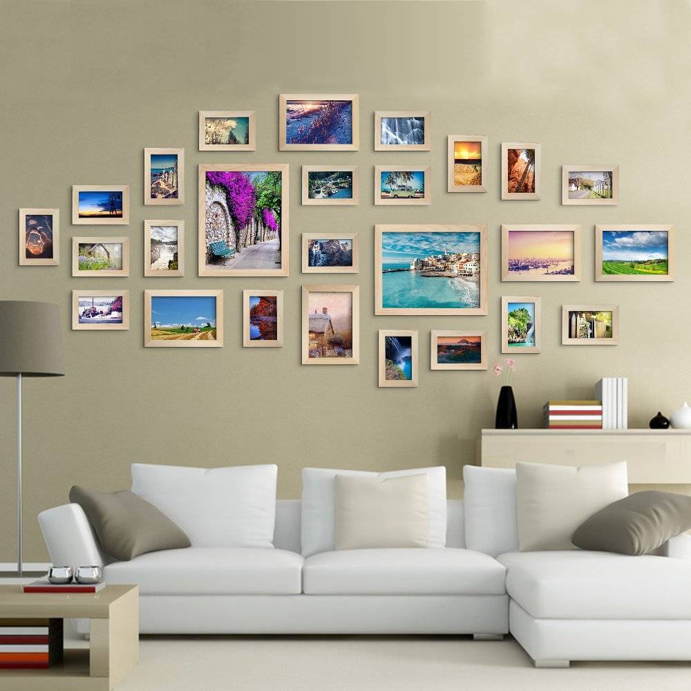 Иногда для создания интересного интерьера можно использовать не только собственные фотографии, но и красивые изображения элементов природы, пейзажей, предметы под макросъемкой, репродукции картин. Когда фотографии уже подобранны и выбраны их размеры, можно подбирать рамки.