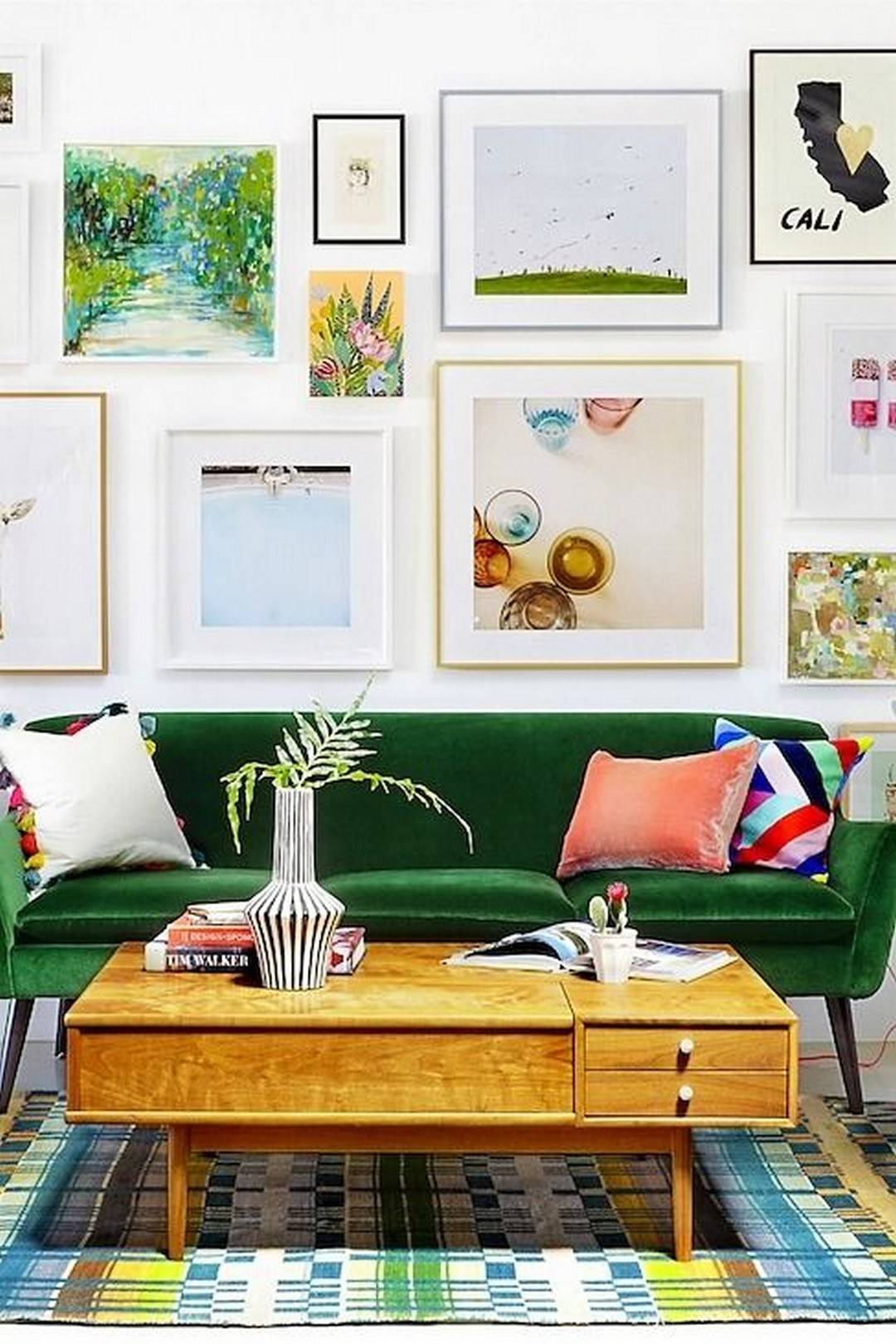 Такое расположение является традиционным стилистическим ходом. Асимметричное размещение фоторамок станет своеобразной изюминкой комнаты, а оформление по центру, добавит пространству гармоничности.