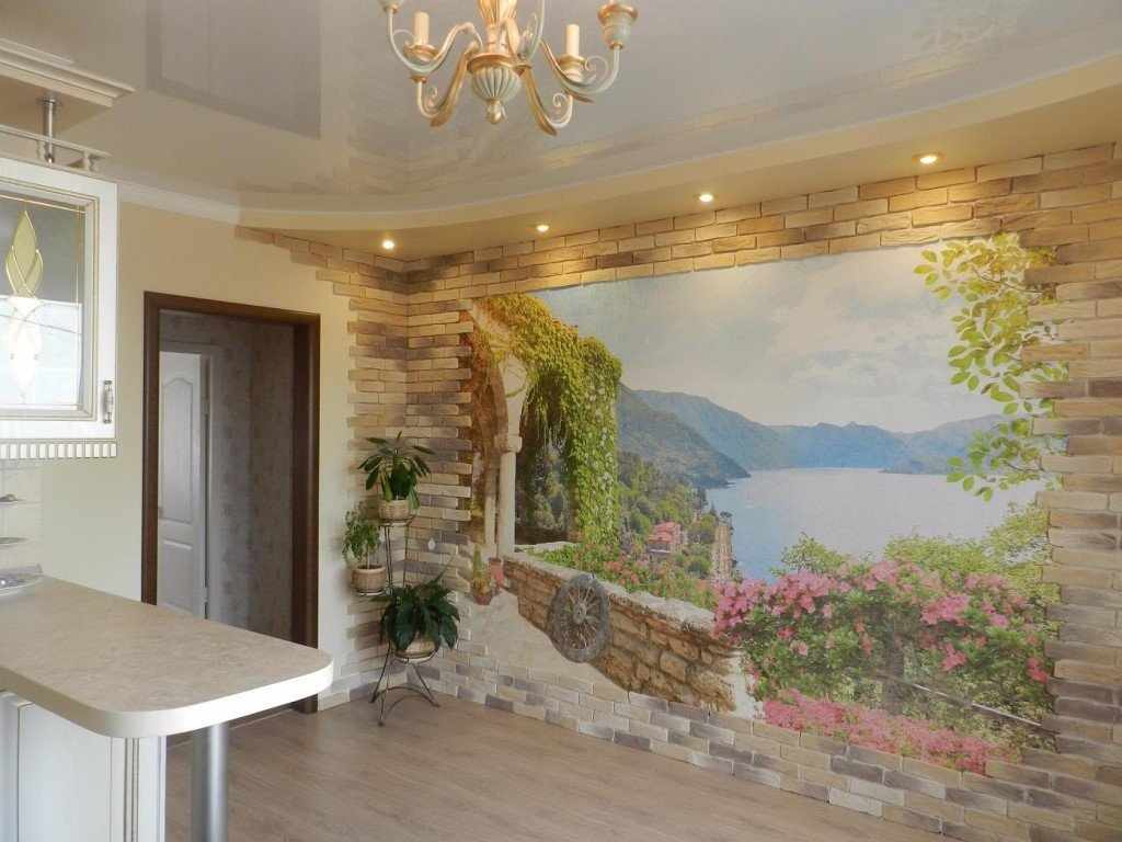 Заменить натуральное изделие смогут фотообои. Визуально почти не отличаются от оригинала. Представлены глянцевыми, матовыми, фактурными типами обоев.