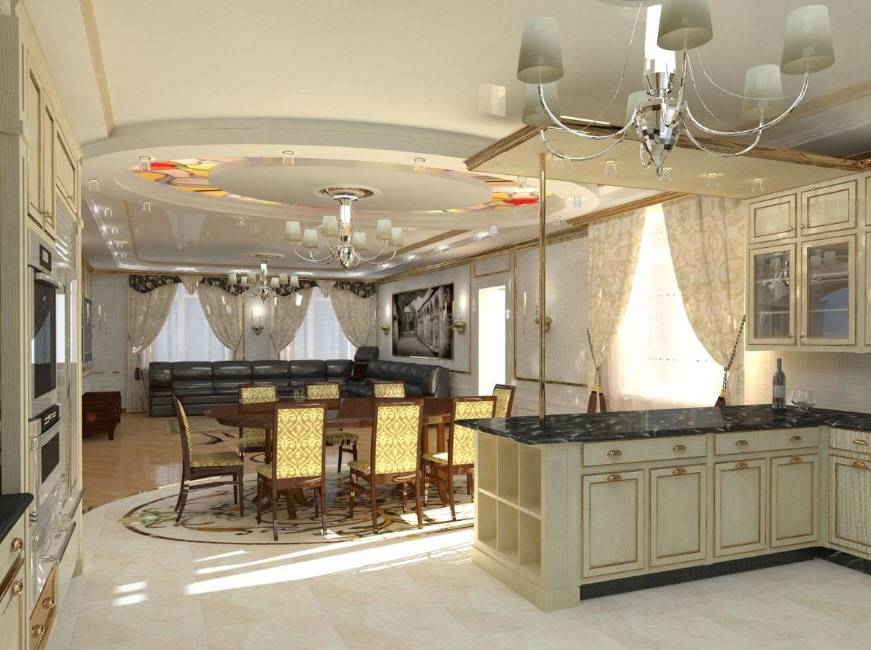 Существует несколько типов квартир, в которые дизайн совмещенной кухни «впишется» особенно удачно.