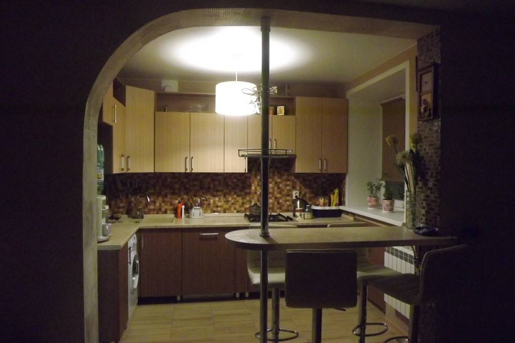 При планировке маленькой кухни обязательно все организовывается так, чтобы каждый сантиметр использовался рационально. Например, наличие дверей часто портит обстановку и визуально «сжимает» и без того тесное пространство. Поэтому от дверного проема приходится избавляться, а на его месте организовывать арку.