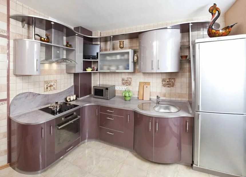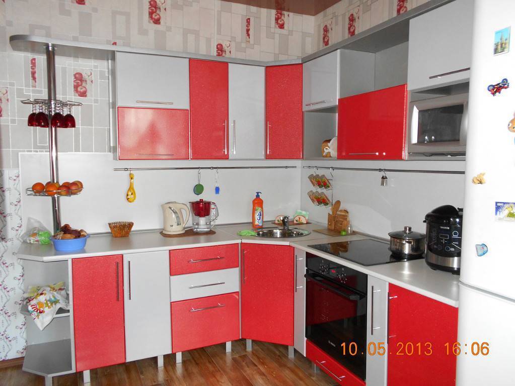 Специальные угловые шкафы, которые обязательны к использованию в такой кухне, имеют довольно широкие двери. Они могут мешаться друг другу при одновременном открывании. Это обязательно стоит заранее учесть.