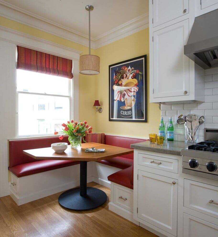 Красивая светлая небольшая кухня с круглым столомИсточник remontbp.com