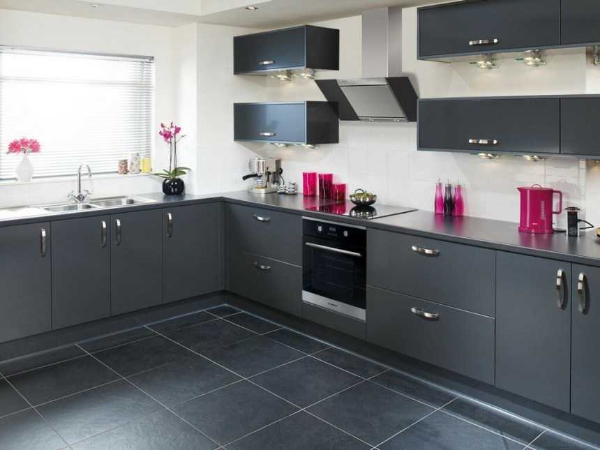 - Не используйте темные цветы в дизайне столешницы, фартука, пола. На темном фоне более заметны высохшие капли виды и разводы от тряпки.