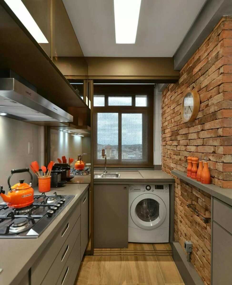 Предпочтительно в таких обстановках устанавливать встраиваемую бытовую технику, чтобы она не выпирала за черты рабочей зоны. Холодильник удачно расположится в нише у смежной или противоположной стены.