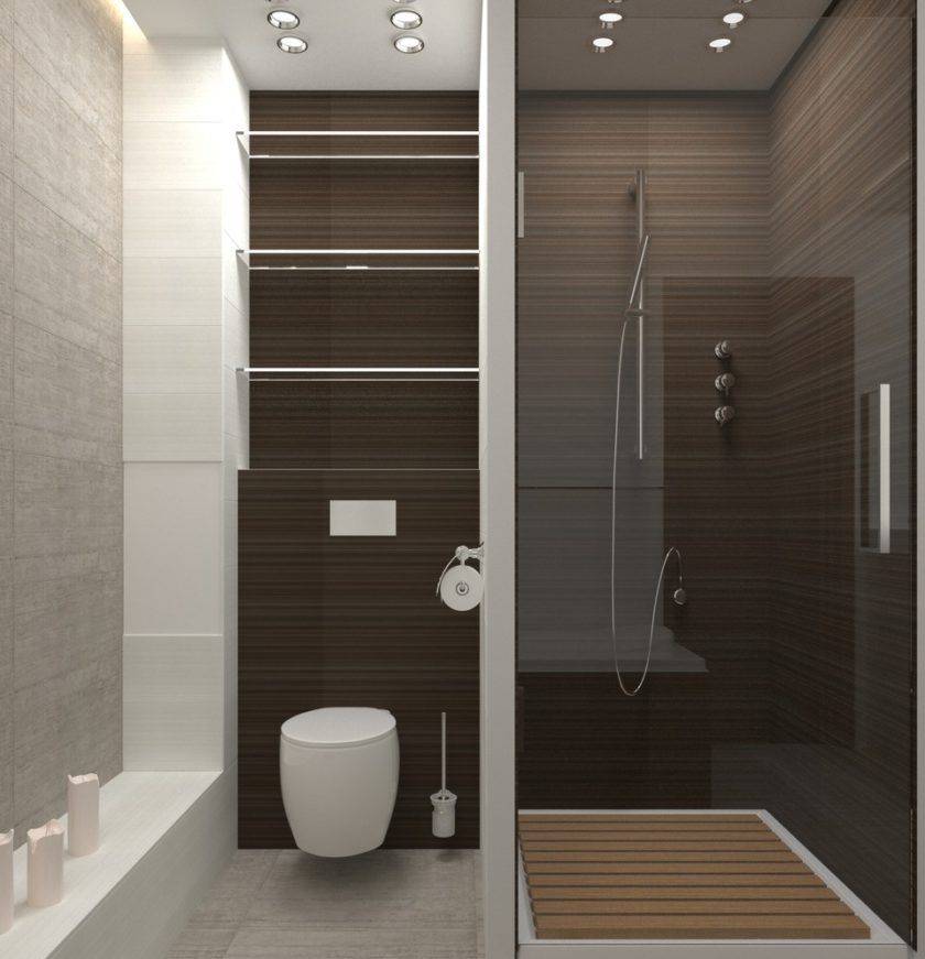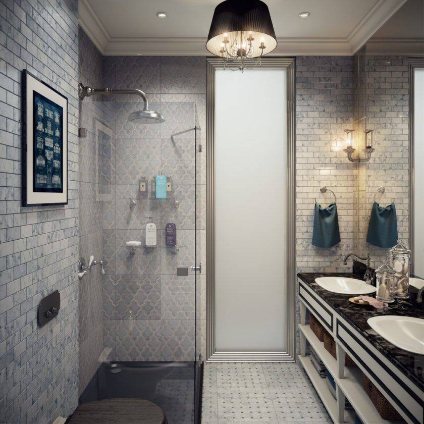 Для хранения полотенец или хозяйственных предметов используются подвесные шкафы или полки из стекла. Даже в узкое пространство получится вписать высокий многоуровневый шкаф. Внешний вид мебели должен повторять стилистическое направление помещения. Для комнаты с высокой влажностью лучше выбирать не деревянную мебель, а ту, которая сделана из МДФ и покрыта защитным, водонепроницаемым акриловым лаком.