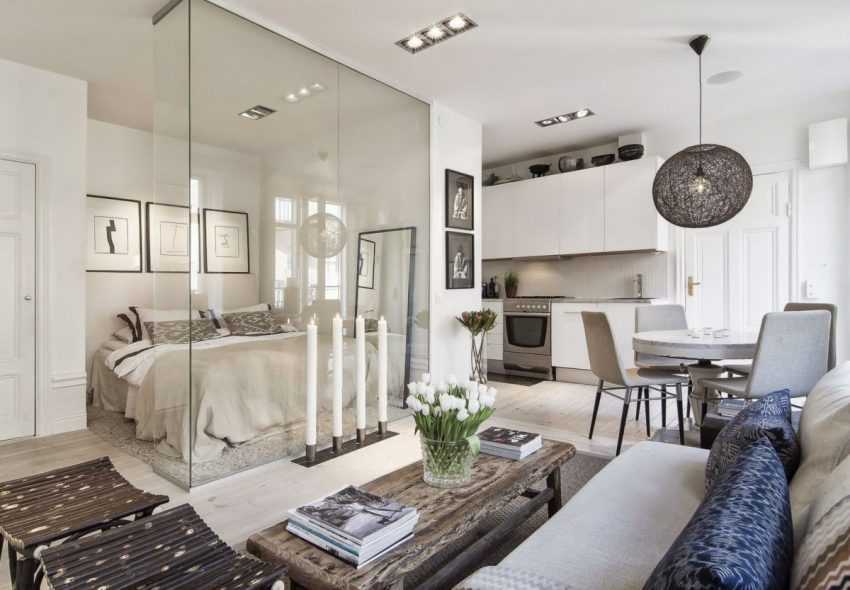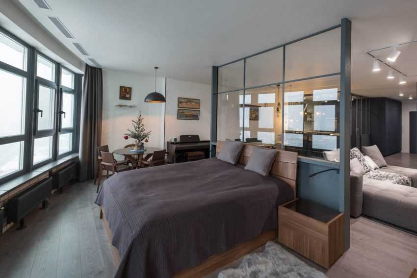 Для совмещенных пространств действуют общие правила зонирования. Можно использовать мебель, перегородки и акценты.