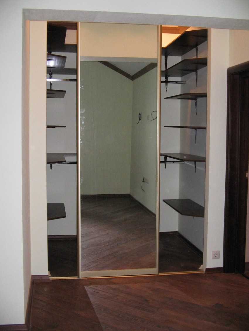 В связи с последним гардеробные комнаты оснащают большей частью распашными и раздвижными дверями. Ширина проема при этом должна быть не менее 60 сантиметров.