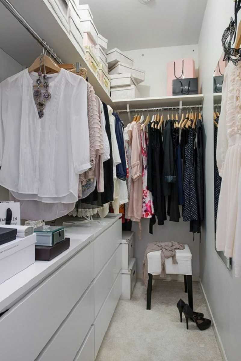 Опасность наличия гардероба — большое количество места. Это может вызвать желание заполнить все полки, шкафы до краев, а это включает в себя все больше одежды, обуви и аксессуаров.