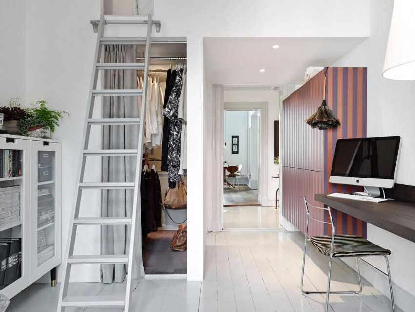 Устраивая гардеробную, не забудьте о таких нюансах, как стремянка и мебельный пантограф, посредством которого легко достать одежду с верхних ярусов.